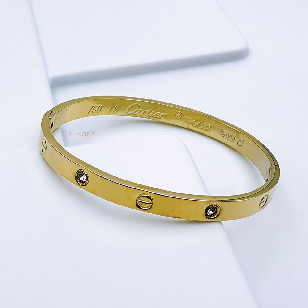 دستبند بنگل استیل طلایی Catier با طراحی خاص و ظریف، انتخابی عالی برای خانمهایی است که به اکسسوریهای لوکس و باکیفیت علاقه دارند.