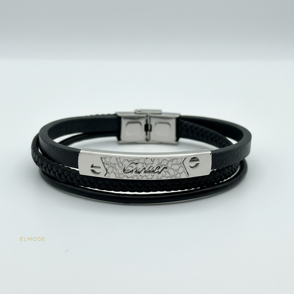دستبند چرمی سهلاین مردانه مشکی Cartier مدل ELM6394