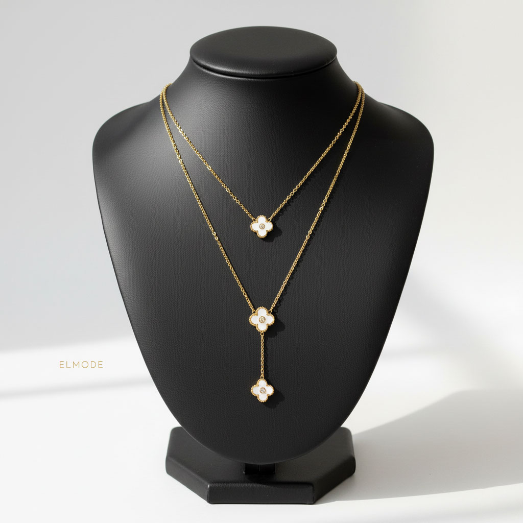 گردنبند زنانه ونکلیف طلایی مدل ELM8301 با طراحی ظریف و نماد معروف گل چهاربرگ،